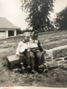 This is my older brother Tim, on the right. He’s 16 months older than I am, and the picture on the left is taken at our grandparent’s place on the barn ridge.  I’m about a year and half, and Tim is ready to turn three.